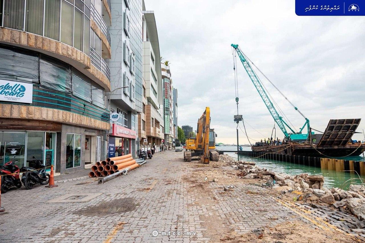 މި މަޝްރޫޢުގެ ކޮންޓްރެކްޓަރ، މޯލްޑިވްސް ޓްރާންސްޕޯޓް އެންޑް ކޮންޓްރެކްޓިންގ ކޮމްޕެނީ (އެމްޓީސީސީ) އިން ބުނީ މިހާރު ކުރިއަށްދަނީ ނަރުދަމާ އާއި ފެން ހޮޅި އެޅުމުގެ މަސައްކަތާއި، މަގުގެ ދުވާރު ހެދުމަށް ބޭނުންވާ ގައު ޖެހުމުގެ އިތުރުން މަގު ބައްތި ޖެހުމުގެ މަސައްކަތްތައް ކަމަށެވެ.