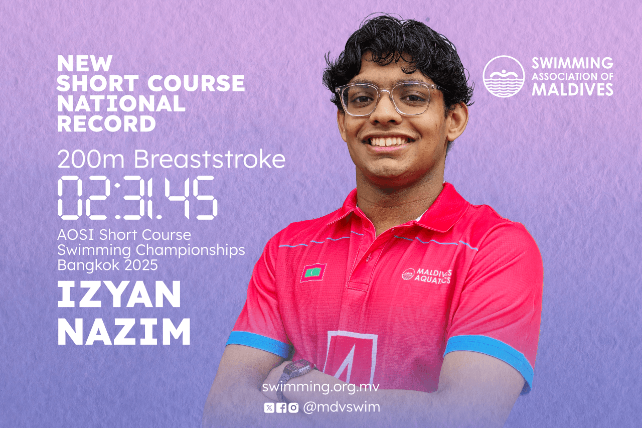 ފިރިހެނުންގެ ޝޯރޓްކޯސް 200 މީޓަރ ބްރެސްޓްސްޓްރޯކް އިވެންޓުގެ ޤައުމީ ރެކޯރޑް އިޒްޔާން ނާޒިމް އާކޮށްފިއެވެ. އިޒްޔާން މި ރެކޯޑު އާކޮށްފައިވަނީ ތައިލަންޑްގައި ކުރިއަށްދިޔަ އޭޝިއަން އޯޕަން ސްކޫލްސް އިންވިޓޭޝަނަލް ޝޯރޓްކޯސް ސްވިމިންގ ޗެމްޕިއަންޝިޕްސް ބެންގްކޮކް 2025 ގައި ވާދަކޮށް، 02:31.45 އިން ރޭސް ފުރިހަމަކޮށްގެންނެވެ.