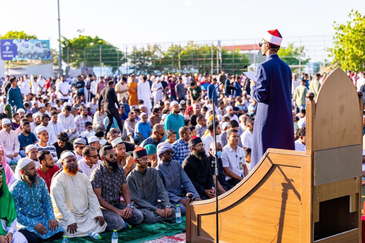 ރޯދައިގެ އަޅުކަން އަދާކުރެވުނީތީއާއި މާތްالله އިސްލާމްދީނުގެ މަތިވެރި ނިއުމަތުގައި ލެހެއްޓެވިކަމަށްޓަކައި، ގިނަގިނައިން އެކަލާނގެ ހަނދުމަކުރުމަށް އީދު ހުތުބާގައި ގޮވާލިއެވެ. އަދި މިއަދަކީ ރޯދައިގެ އަޅުކަން އަދާކުރެވުނުކަމަށް ޓަކައި ޝުކުރުކޮށް، ދީލަތިވުމުގެ ދުވަސް ކަމަށާއި އިސްލާމީ ޢީދުތައް ފެށެނީ، އިޖުތިމާޢީ ބޮޑު ބައްދަލުވުމަކުން ކަމަށް ހުތުބާގައި ވަނީ ފާހަގަ ކޮށްފައެވެ.