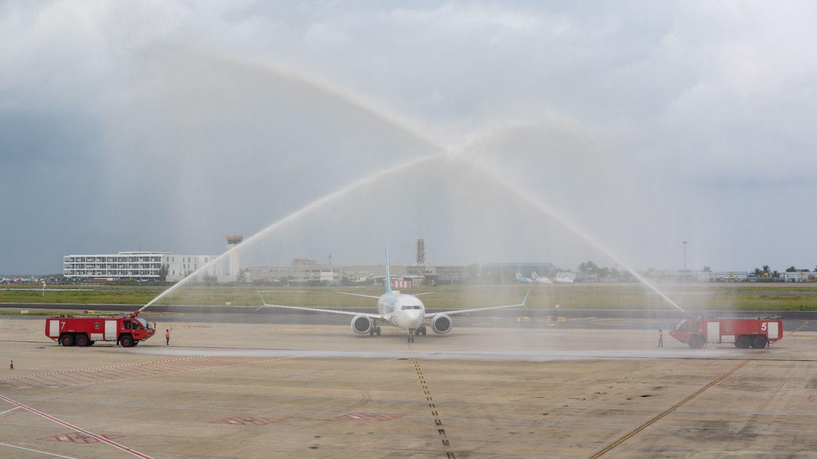 ގްރޭޓާ ބޭ އެއާލައިންސްގެ ޗާޓަރު ދަތުރުތައް ރާއްޖެއަށް ފެށުން ފާހަގަކުރުމުގެ ގޮތުން އެ އެއާލައިނުން މިއަދު ރާއްޖެ އައި ފުރަތަމަ މަތިންދާބޯޓު، އެޗްބީ2500 އަށް ވަނީ ވޯޓާ ސެލިއުޓެއް އަރުވައިފައެވެ. އަދި އެ އެއާލައިނުން ރާއްޖެ އައި 174 ފަސިންޖަރުންނަށް ވަނީ ހޫނު މަރުހަބާއެއް ކިޔައިފައެވެ.