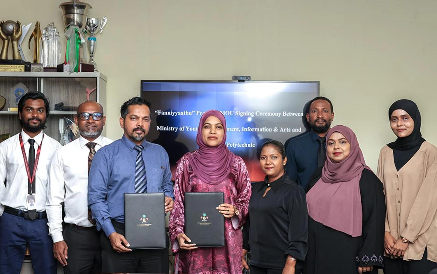 ފަންނިއްޔާތުގެ ދާއިރާއިން ޒުވާނުން ތަމްރީނުކުރުމަށް މިނިސްޓްރީ އޮފް ޔޫތު އެމްޕަވަމަންޓް އިންފޮމޭޝަން އެންޑް އާރޓްސް އާއި މޯލްޑިވްސް ޕޮލިޓެކްނިކްއާއެކު އެމްއޯޔޫއެއްގައި ސޮއި ކޮށްފިއެވެ.
