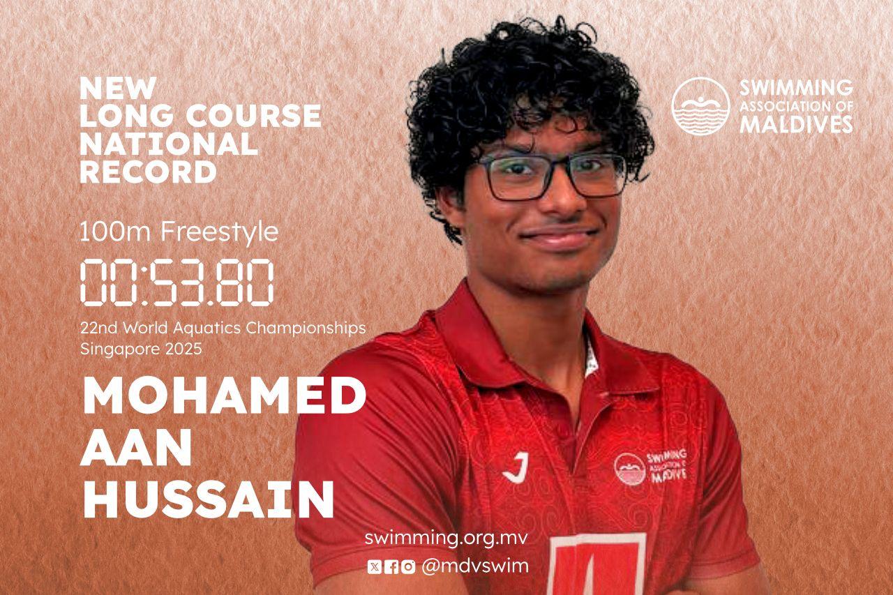 ފިރިހެނުންގެ ލޯންގްކޯސް 100 މީޓަރ ފްރީސްޓައިލް އިވެންޓުގެ ޤައުމީ ރެކޯރޑް މުޙައްމަދު އާން ޙުސައިން އާކޮށްފިއެވެ. ސިންގަޕޫރުގައި މިހާރު ކުރިއަށްދާ 22 ވަނަ ވޯލްޑް އެކުއަޓިކްސް ޗެމްޕިއަންޝިޕްސްގައި އާން މިރެކޯރޑް އާކޮށްފައިވަނީ 00:53.80 އިން ރޭސް ނިންމައިގެންނެވެ.